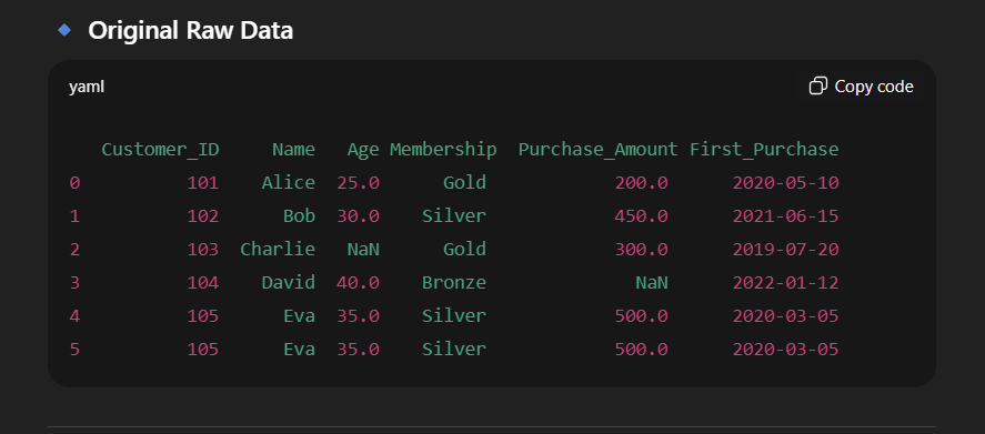 print("🔹 Original Raw Data:")