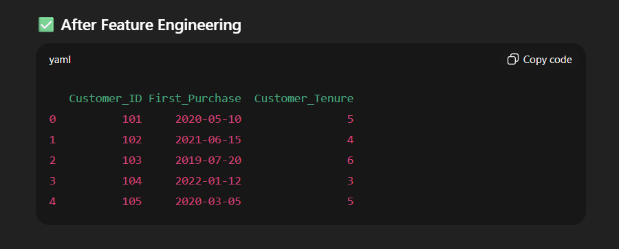 print("\n After Feature Engineering:")