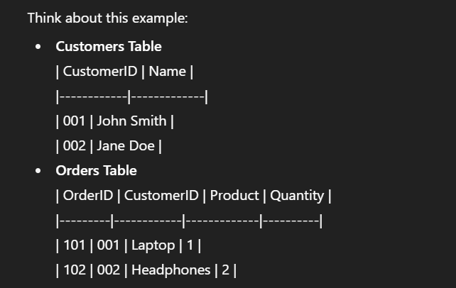 - This is like connecting puzzle pieces, one table has personal info, another has purchase info, and together they tell the full records.