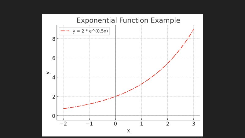 3) Exponential Functions: It’s Useful for data with rapid growth or decay, like population growth, viral spread, or radioactive decay. This function is used in machine learning for activation functions.