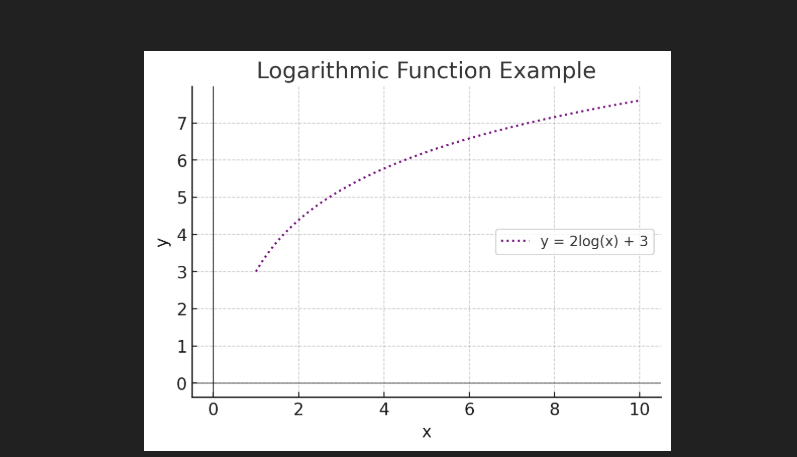 4) Logarithmic Functions: This is the inverse of exponential functions. It means Growth is fast at the start and then slows down. It’s used in algorithms for feature scaling and information gain in decision trees.