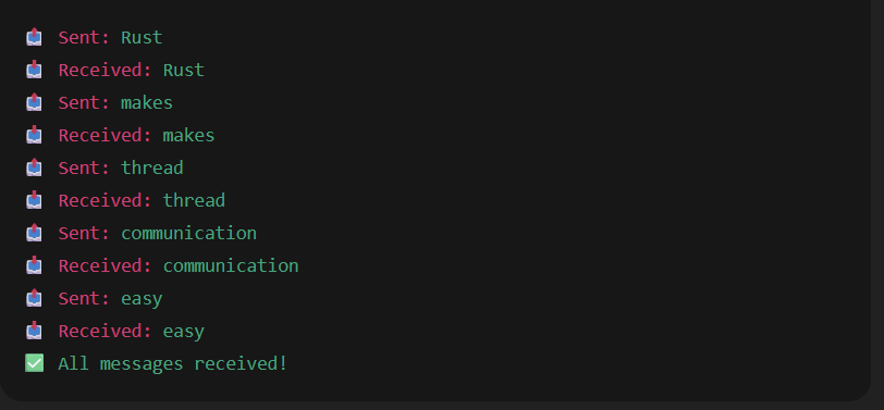 let messages = vec!["Rust", "makes", "thread", "communication", "easy"];