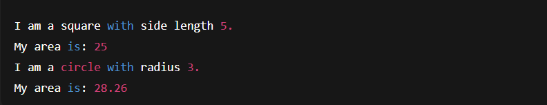 For example, the compiler already knows which area() function to call for a rectangle or circle before the program runs.